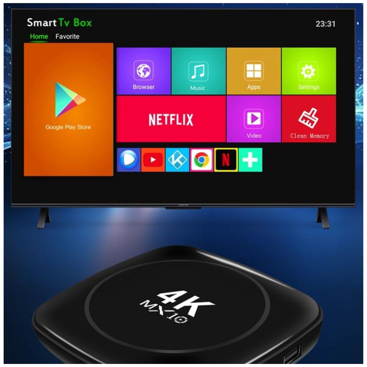 Bienvenido al futuro de la televisión con el Convertidor Inteligente 4K MX10 Box S, un dispositivo inteligente diseñado para llevar tus experiencias visuales a un nuevo nivel. Con 64GB de RAM, 256GB de almacenamiento, cuenta con la potencia del sistema Android, este dispositivo redefine la forma en que interactúas con tu televisor. Sumérgete en el mundo del entretenimiento de alta definición con la resolución 4K y disfruta de la conveniencia de las actualizaciones de firmware para asegurar un rendimiento óptimo.